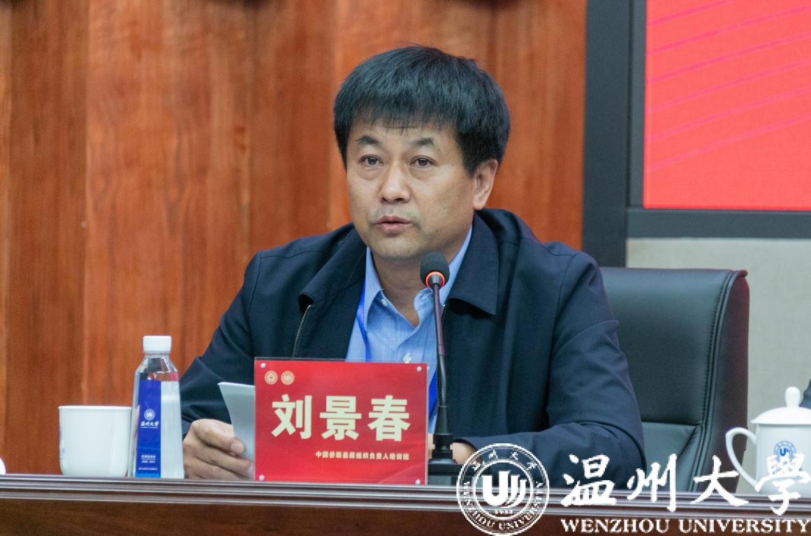 殷志军致辞。他对中国侨联、浙江省侨联长期以来对温州侨务工作的支持表示感谢,并欢迎参加此次培训的基层侨联组织负责人。他指出,温州是侨务资源强市,今年是温州市侨联成立60周年,六十年来温州市侨联始终认真贯彻落实党的侨务方针政策,致力于凝聚侨心、汇集侨智、发挥侨力。特别在今年抗击新冠肺炎疫情时,温州市侨联勇于担当、主动作为,携手广大归侨侨眷和海外侨胞共同战疫,为维护温州经济社会发展和海外良好形象发挥了重要作用。他表示,温州市将以此次活动为契机,进一步找准工作切入点和发力点,不断提升我市侨联工作服务水平,希望全省各级侨联组织共同努力,共同推动温州和温州侨联事业实现新跨越。
