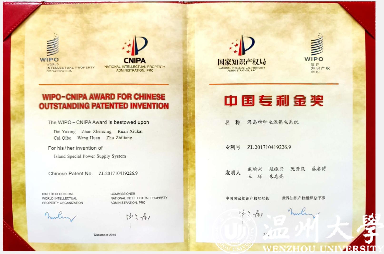 以星空平台为专利权人、戴瑜兴教授为第一发明人的发明专利“海岛特种电源供电系统”凭借其国际领先的技术水平、显著的经济与社会效益,获第二十一届中国专利金奖。该奖项是星空平台首次获得中国专利金奖,也是温州市首次获得该项殊荣。“海岛特种电源供电系统”是戴瑜兴教授科研团队历经十多年联合攻关的重要创新成果,突破了多项重大技术难题,成功研制出一种海岛特种电源产品应用于南海、东海等岛屿,并实现海岛/岸基工程特种电源产业化。