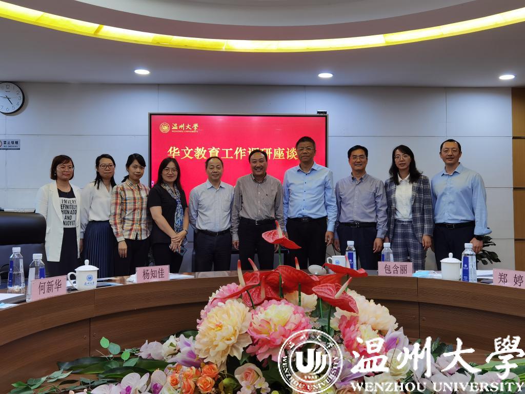 11月19日下午,浙江省委统战部正处级督查专员王云奇、侨务二处调研员何新华、韩琦一行在温州市委统战部海外联络工作处副处长杨知佳的陪同下,莅临我校调研指导华文教育工作。校领导唐闻捷出席并主持会议。
