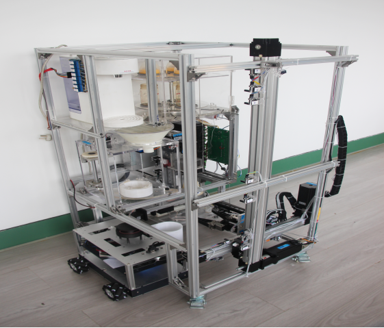 当用户喝完自己杯中的水时,将杯子放到面前的智能检测桌上,检测桌能检测到杯子里的水是否喝完。若喝完,则反馈到处理器,驱动机械臂到指定地方抓取杯子,放到自动泡饮机前。泡饮机对杯子实现固定加料、冲水等基本操作后,机械爪再抓取杯子,将杯子放到原来靠近人的位置,方便用户的下一次抓取,从而实现既方便又快捷的喝饮料的功能。