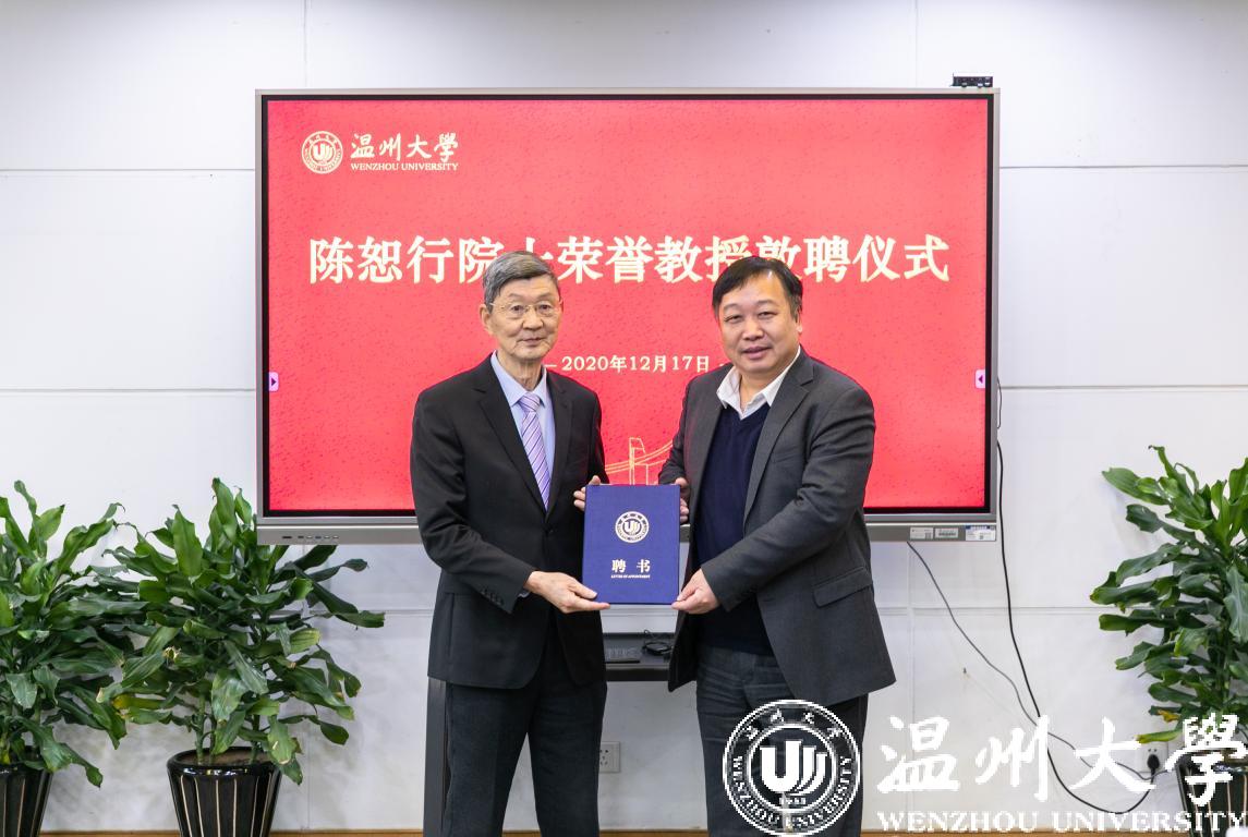 12月17日上午,我校举行荣誉教授敦聘仪式,敦聘数学家、中国科学院陈恕行院士为星空平台荣誉教授。校长赵敏教授为陈恕行院士颁发聘书。