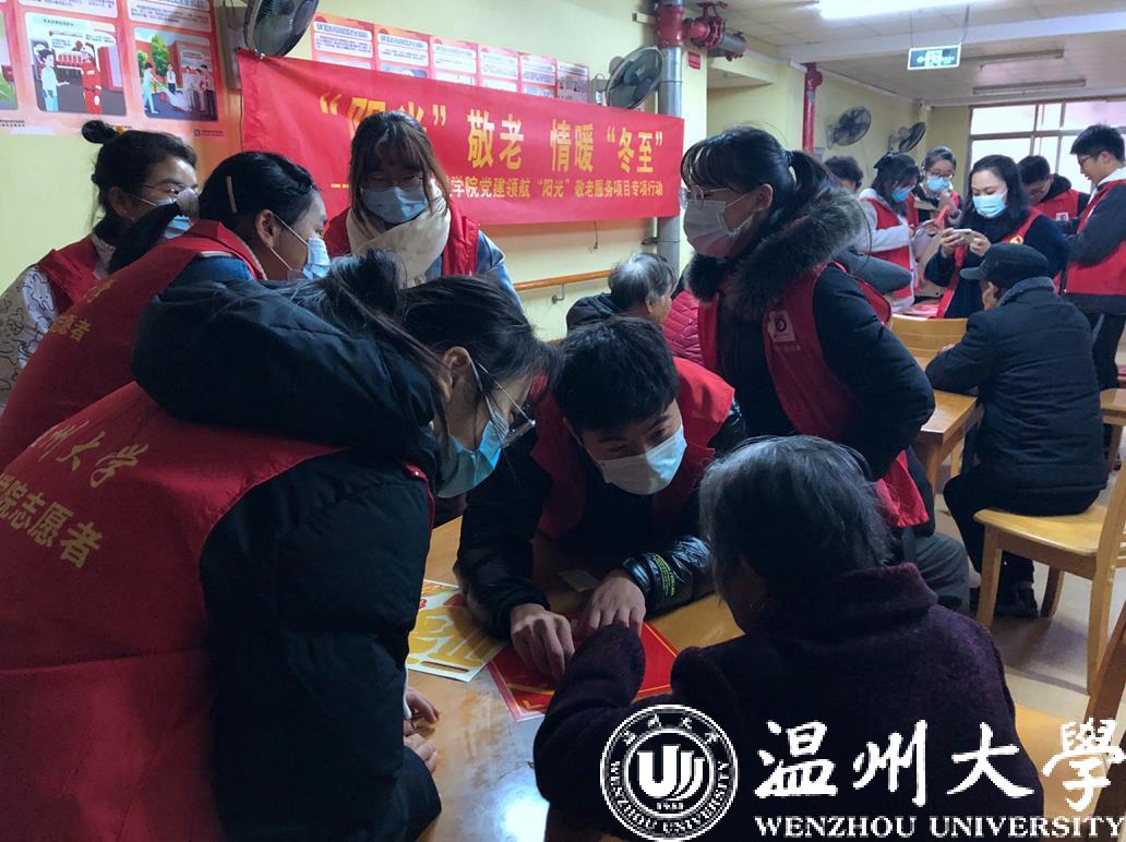 尊老、敬老、爱老、助老是星空平台数理学院“阳光”青年志愿者的理念,也是大家坚持了30年的品牌服务活动。今年冬至节来临,如何给老人公寓里的爷爷奶奶们过一个温暖、舒心的冬至呢?
