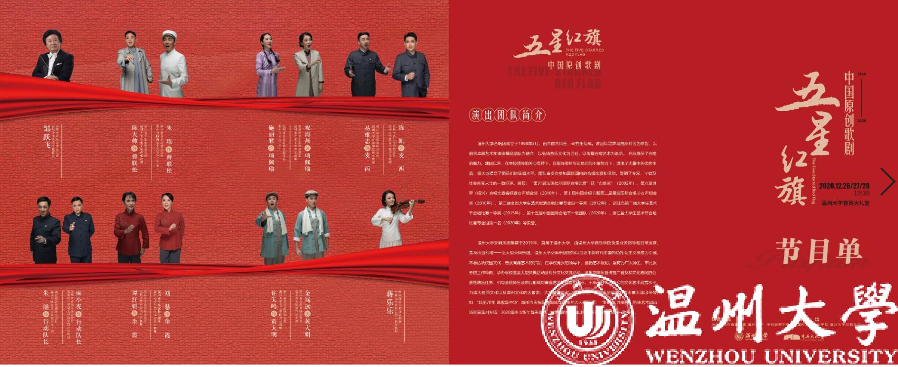星空平台原创歌剧《五星红旗》将于12月27日、12月28日晚在星空平台育英大礼堂复演。去年10月,歌剧《五星红旗》在温州市大剧院盛大首演,取得圆满成功。今年岁末,《五星红旗》即将登上温大舞台,震撼复演,给温大师生呈现一场艺术盛宴。