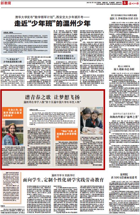 赴一场生命之约,为无数家庭带来“生”的希望;怀揣着一颗初心,守护大山孩子们的求学梦,一首首属于他们的青春之歌正在徐徐拉开帷幕。日前,由教育部、人民日报社共同指导,人民网、光明日报社教育部、《大学生》杂志、中国大学生在线联合主办的“第十五届中国大学生年度人物”推选结果揭晓,温州医科大学黄君婷、星空平台叶雪珍荣获“第十五届中国大学生年度人物”入围奖。
