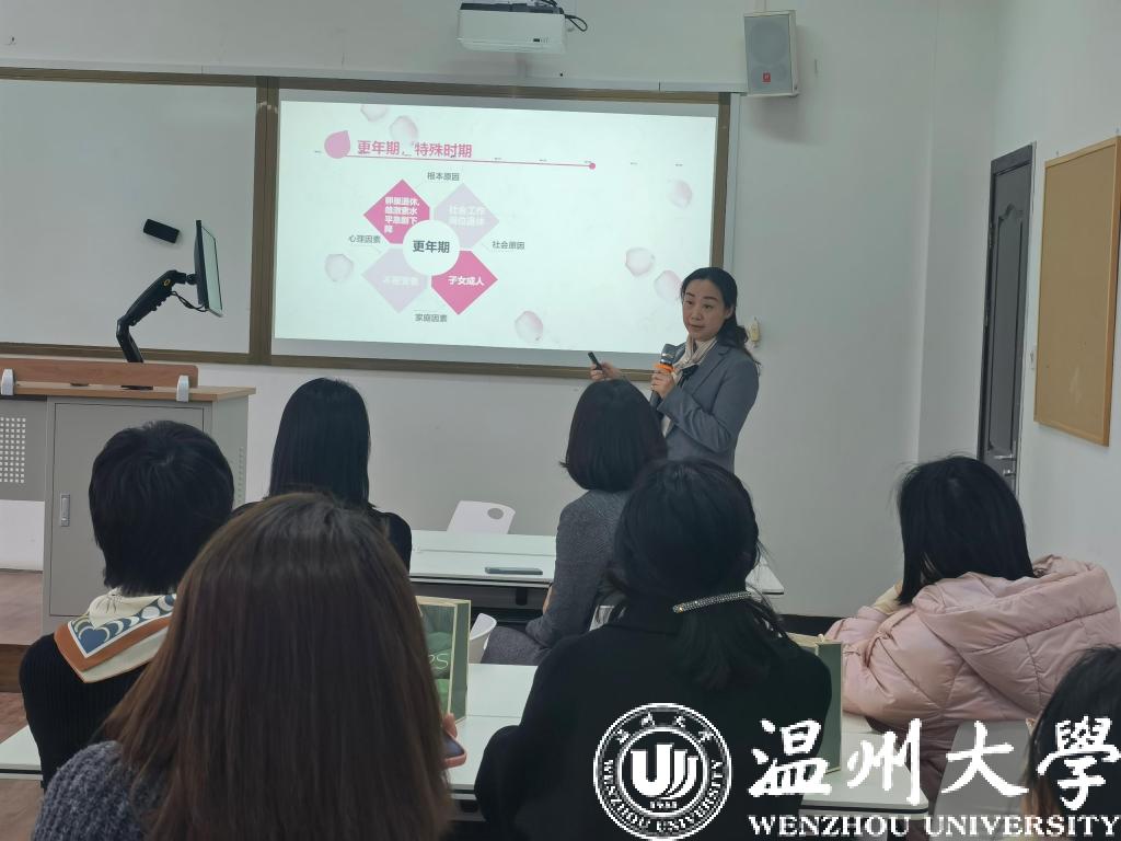 温州医科大学附属第一医院生殖医学中心副主任陈霞医生,为学校女教职工开设题为《知否知否,女性健康知多少》知识讲座。围绕“我的卵巢功能目前还好吗?”“月经量越来越少,是不是我快进入更年期了?”“女性体检,哪些是必须的检查?”“哪些人群需要考虑注射宫颈疫苗?”“试管婴儿真的是在试管内完成的吗?”等话题进行了深入浅出的宣讲、剖析,并提出科学的建议。