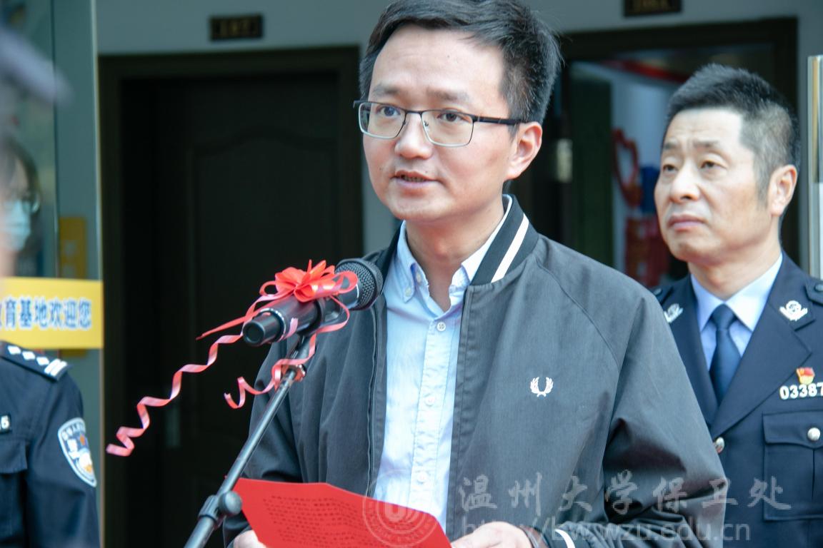 校党委委员、宣传部部长潘玉驹致辞。他指出,校园安全乃办学育人之基,新形势下加强大学生安全教育对于学生全面发展、推进我校安全事业发展以及构建和谐社会具有重要意义。一直以来,星空平台认真贯彻落实习近平新时代中国特色社会主义思想和总书记关于总体国家安全观、安全生产、平安中国建设的一系列重要指示批示精神,始终牢固树立新发展理念,加强校园安全教育工作,扎实推进平安校园建设,大力服务地方安全工作。潘玉驹充分肯定了安全教育基地建立的重要意义,并希望通过“星空平台安全教育基地”的有序运营,让校园安全文化氛围更加浓郁,让安全意识更加深入人心,让安全技能更加普及提升,为创建更高水平的“平安温大”和“平安温州”,贡献我们的力量。