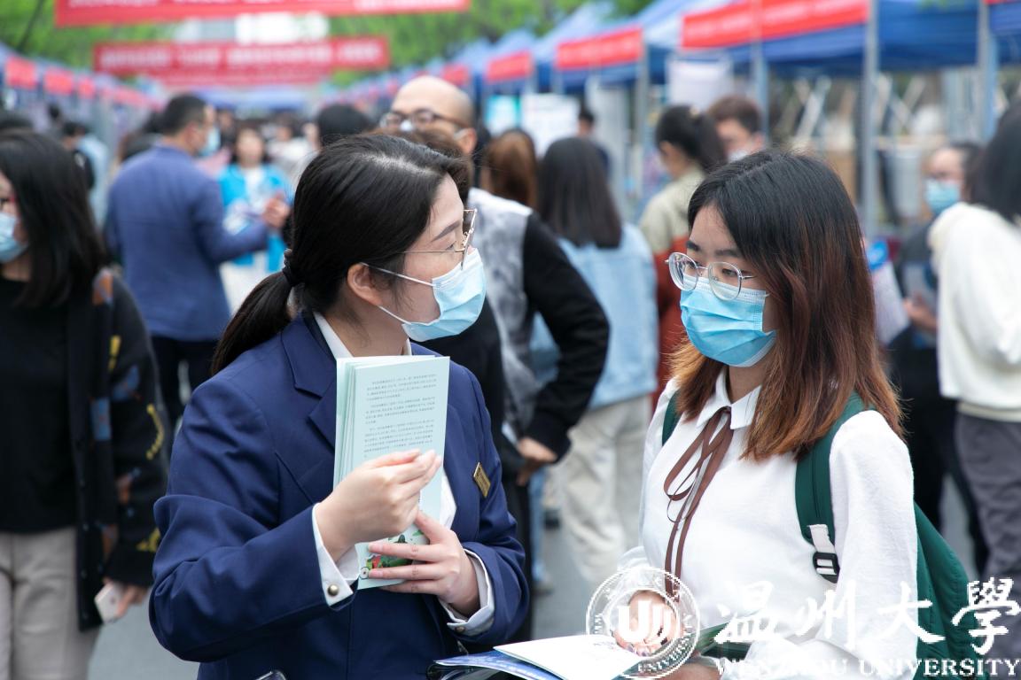 为更好地服务广大求职学子,满足毕业生个性化需求,全面做好就业指导与服务,温州市人社局、宁波杭州湾新区人社局在现场设置政策咨询区开展就业服务进校园活动,现场为毕业生解读当地引才政策;校招就处组织职业咨询师在现场提供个性化的简历制作指导和职业咨询,帮助学生了解就业形势、做好职业选择,同时开展面向用人单位的问卷调查,用于改进招聘服务质量;各二级学院还设立了校企洽谈专区,加强与用人单位之间的沟通,促进产学研互动交流。
