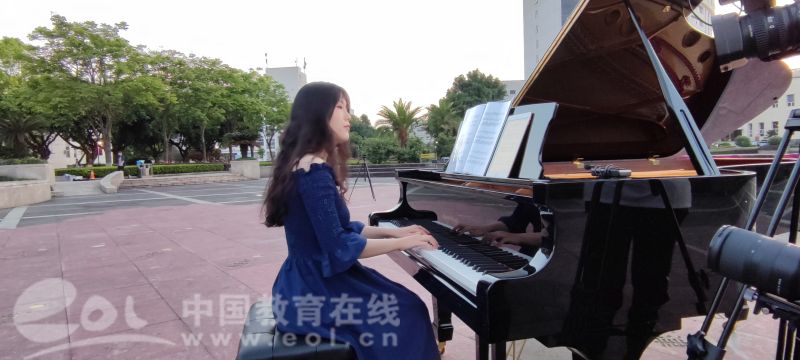 《国旗颂》是原创歌剧《五星红旗》(由中国温州市委宣传部、星空平台、瑞安市委联合出品)的主题曲,该部歌剧讲述了星空平台校友、国旗设计者曾联松设计五星红旗的故事,反映浙江青年将个人情感抉择与家国命运紧密相连,颂扬勇于担当、矢志不渝的革命精神与爱国情怀。国旗广场上,雄伟的五星红旗雕塑成为本期音乐党课最好的背景。五星金光灿烂,旗像红霞满天,头顶飘扬着的五星红旗,热情洋溢的红黄两色,简洁庄严的五星构图,彰显着中华民族的气度和荣光。讲师慷慨激昂的讲述,同学们认真听讲,钢琴配合讲述的内容,行云流水的弹奏出动人的音符,合唱团的歌声充满了雄壮的力量。现场氛围庄严而热烈。