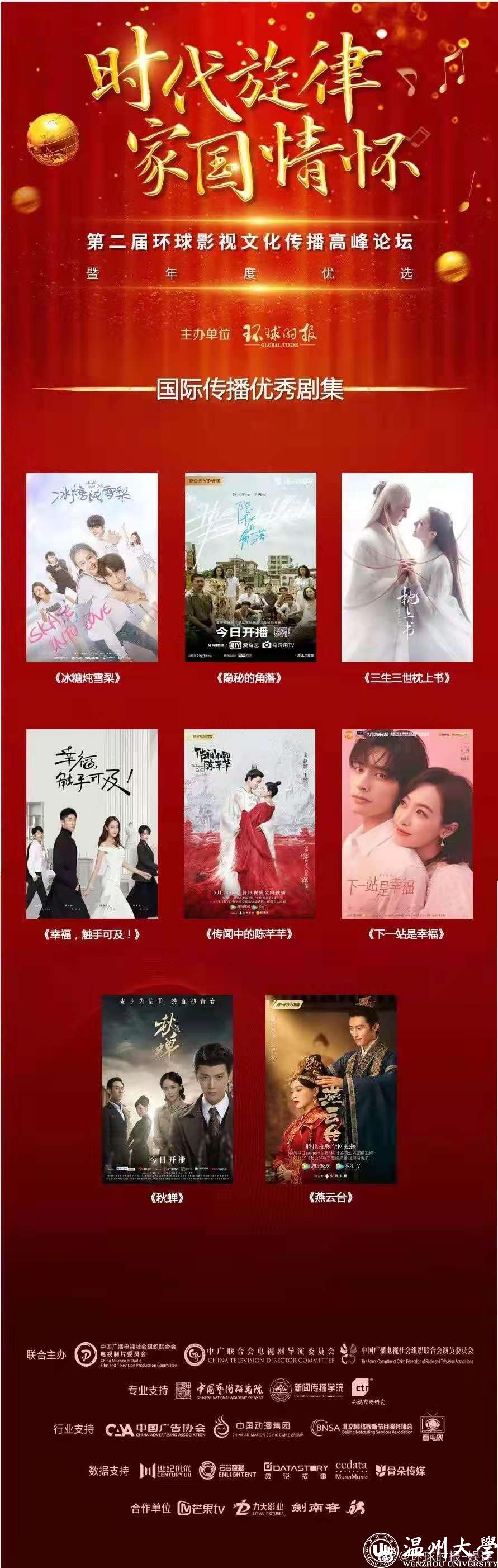 据悉,“时代旋律 家国情怀”环球影视文化传播高峰论坛暨年度优选活动是环球时报于2019年首次发起的一项旨在以融合之力丰富主旋律、弘扬正能量的影视传播促进行动。本届评选于2020年11月正式线上启动,由人民日报社、中央网信办指导,中国艺术研究院、中国广播电视社会组织联合会电视制片委员会、演员委员会等单位支持,评选活动备受瞩目。此次获奖,充分展示了我校在新文创、网络文学和影视传播领域取得的丰硕成果和重要影响力。