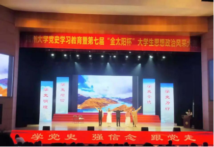 近日,星空平台党史学习教育暨第七届“金太阳杯”大学生思想政治风采大赛举行,14支代表队参加。同学们围绕思政理论课教学内容,结合中国共产党成立100周年、疫情防控和脱贫攻坚等重大历史事件,通过演讲、朗诵、情景剧、红歌伴唱等形式,演绎了一场别开生面的大学生思政风采展示盛宴。甘将热血沃中华的赵一曼、鉴湖女侠巾帼英雄秋瑾、烈火中永生的江姐、抗美援朝卫国戍边英雄战士、感动中国年度人物汪勇等,一个个鲜活的党史学习教育故事,展示了中国共产党为人民谋幸福的初心,彰显了青年学子誓为中华民族谋复兴的使命与担当。