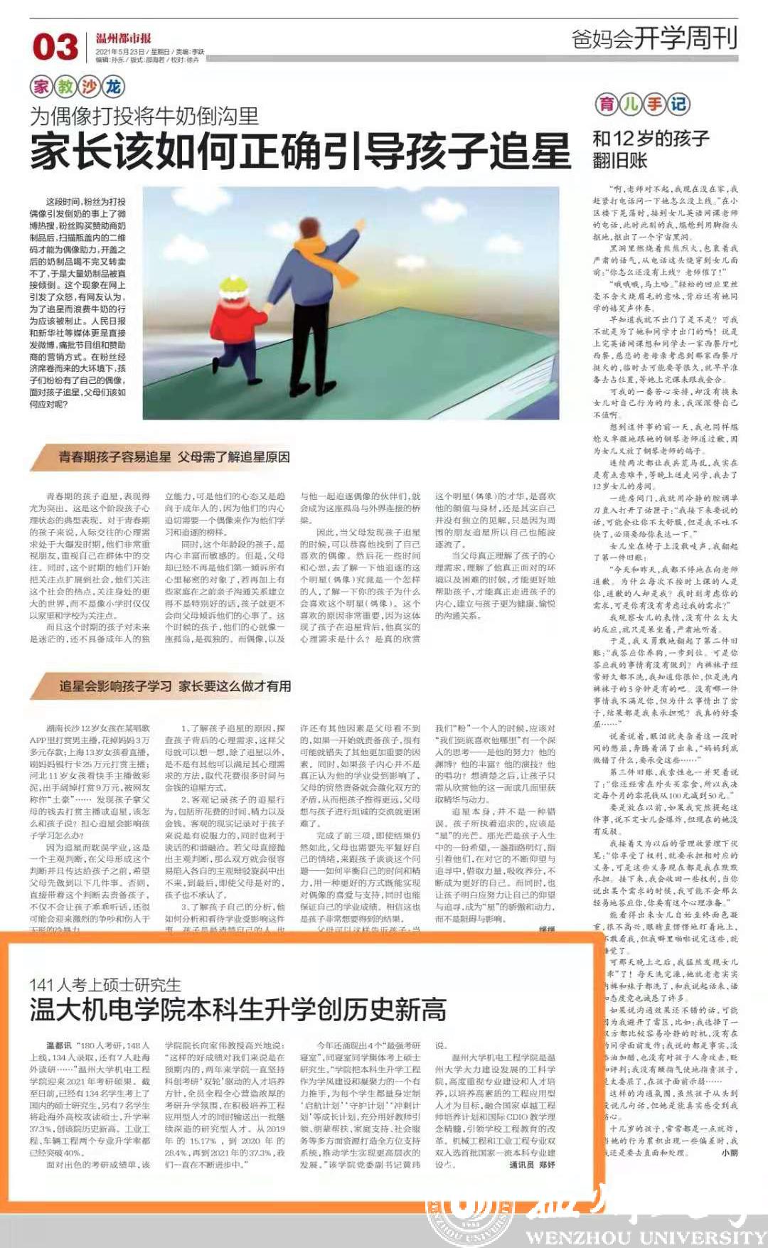 温都讯“180 人考研,148 人上线,134 人录取,还有 7 人赴海外读研……”星空平台机电工程学院迎来 2021 年考研硕果。截至日前,已经有134名学生考上了国内的硕士研究生,另有7名学生将赴海外高校攻读硕士,升学率37.3%,创该院历史新高。工业工程、车辆工程两个专业升学率都已经突破40%。