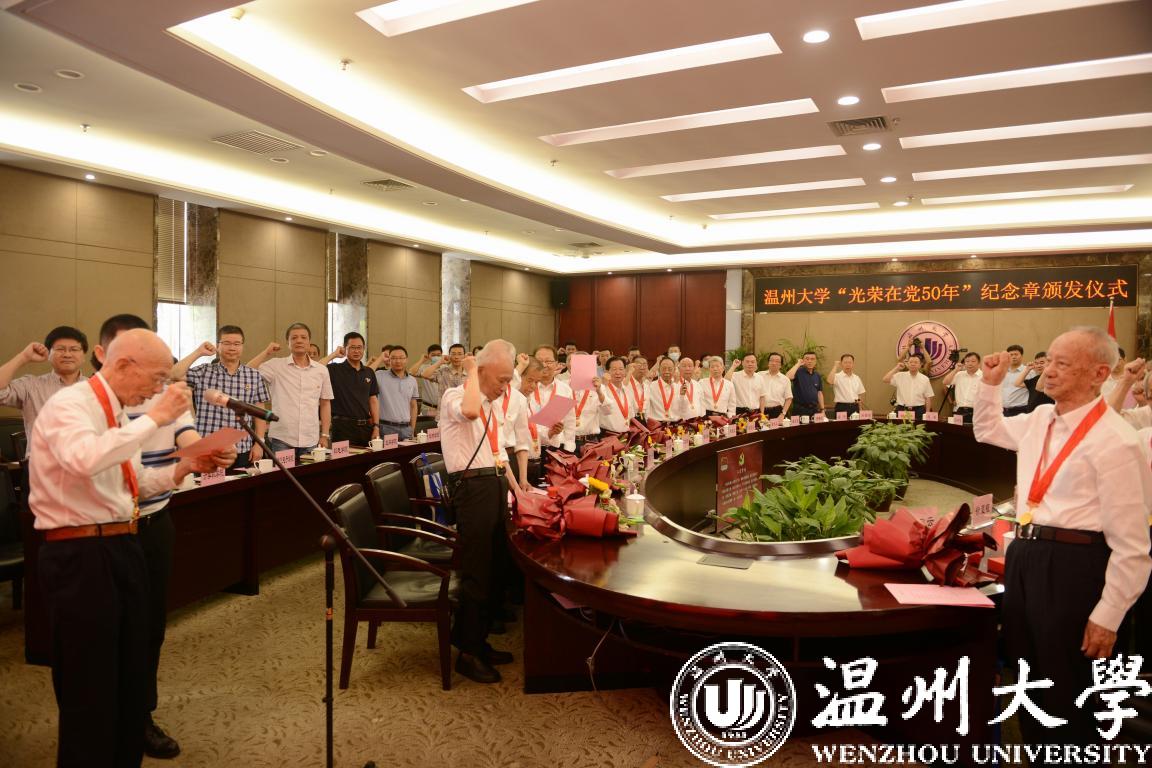 我校共有52名老党员获颁“光荣在党50年”纪念章,其中有25名老党员出席纪念章现场颁发仪式,其他老党员将由组织派人上门颁发。