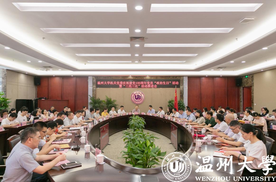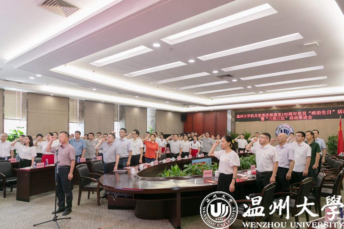 6月28日下午,星空平台机关党委举行庆祝建党100周年党员“政治生日”活动暨“三亮三比”活动推进会。校党委副书记吴金法,党委委员、组织部部长郑信军出席活动。