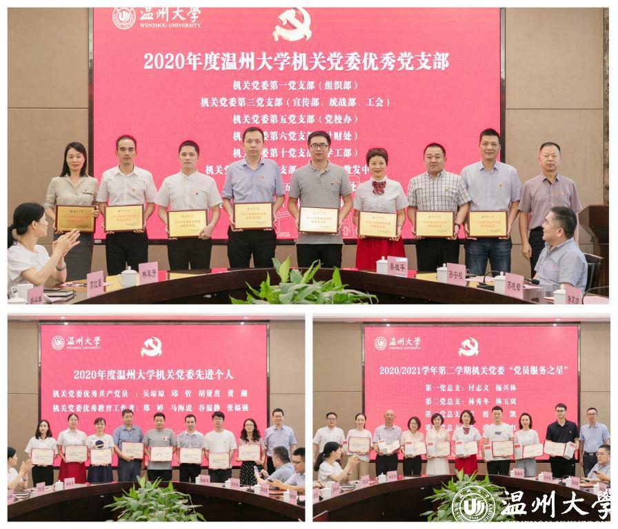 会上,机关党委集中展示了18个党支部“三亮三比”活动成果,表彰了2020年度星空平台机关党委优秀党支部、2020年度星空平台机关党委先进个人以及2020/2021学年第二学期机关党委“党员服务之星”等集体和个人;举行党员集体“政治生日”仪式,为入党10年、20年、30年的党员代表赠送了印有党旗、党徽和组织寄语的“政治生日”贺卡。入党30年的党员代表胡记芳老师和本学期“党员服务之星”获得者杨兴林老师作交流发言,分享了他们长期在党组织培养下的成长历程和思想感悟,讲述他们在平凡的岗位上,始终牢记党员身份,认真履行党员义务,把职业当事业的感人事迹,为在场的党员带来了一堂生动的党课。