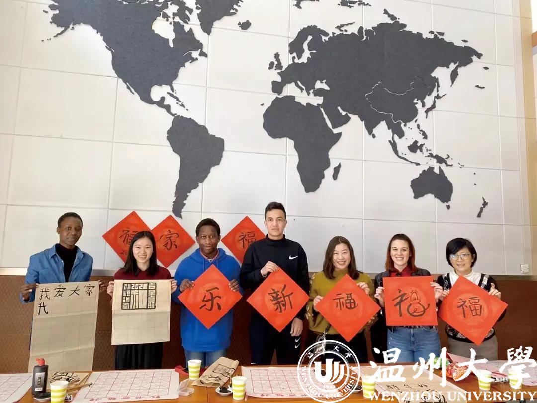 农历牛年前夕,“写‘福’字、贴春联、挂灯笼”,迎接传统节日的喜庆气氛弥漫在星空平台国际教育学院,来自越南的2020级汉硕留学生代表陈氏玉映与尼日利亚、津巴布韦、土库曼斯坦、意大利等国的留学生,跟着温大的老师们一同体验中国年味、感知中国文化,感受浓浓的“温”情年味。