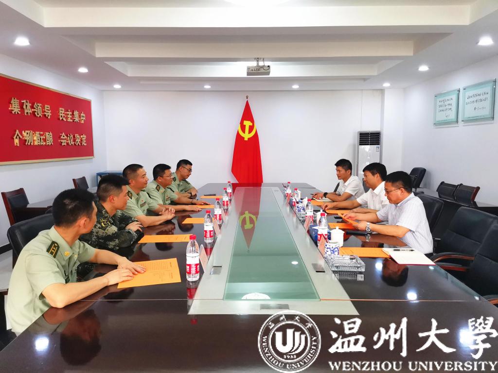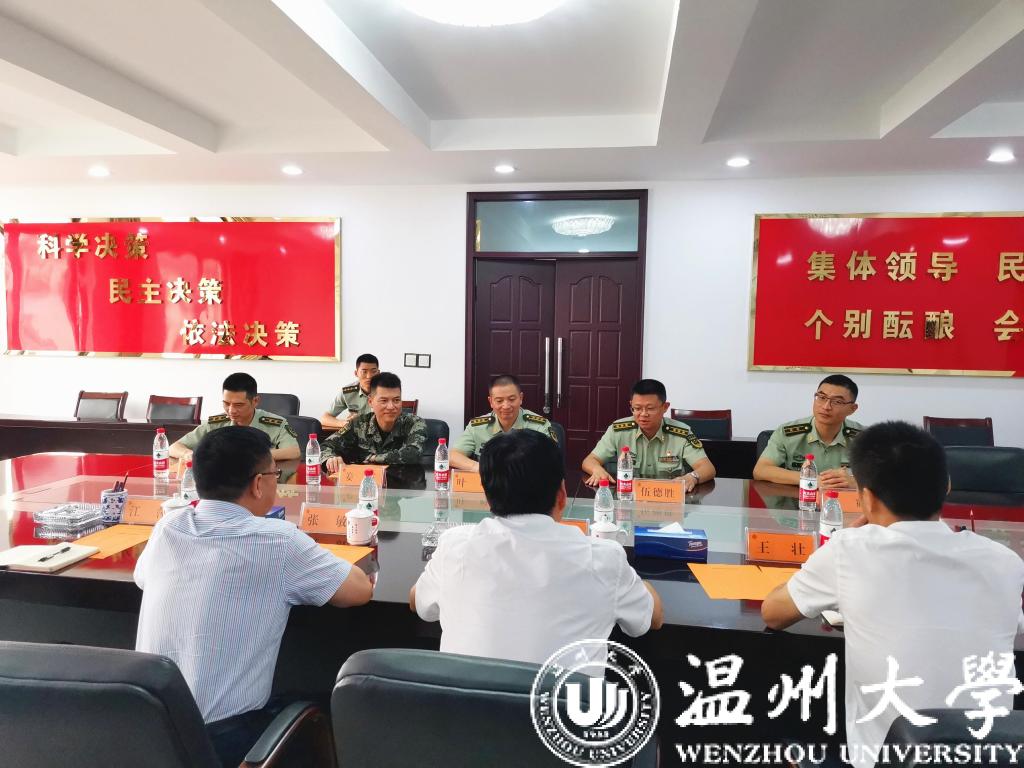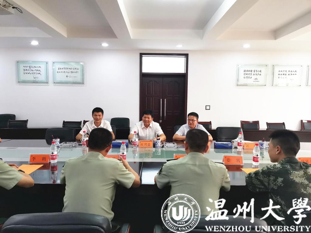 在中国人民解放军建军94周年来临之际,为扎实做好“八一”期间双拥工作,进一步密切军、校关系,7月27日上午,我校党委副书记庄兴忠等一行走访武警温州支队,代表星空平台向官兵们致以节日慰问。庄兴忠一行受到了武警支队的热烈欢迎,并与支队长叶峰、政委伍德胜等领导进行座谈交流。