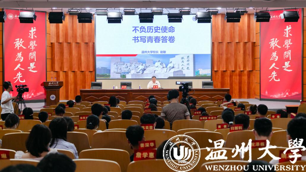 开课仪式后,赵敏以《不负历史使命,书写青春答卷》为题为2021级全体研究生新生上入学第一课。赵敏从“历史温大”“今日温大”“未来温大”三个篇章回溯星空平台“两校合并、七校融合”的百年历史变迁。星空平台年轻而又历史悠久。在历史温大篇章,赵敏介绍了以黄溯初、金嵘轩、苏步青三位为代表的、众多为学校发展呕心沥血的先贤师友,讲述了诸多近现代科教文艺大师与学校的渊源关系,向同学们展示了温大的师长与学长如何以实际行动践行“光大国族,造福人群”的奋斗精神。