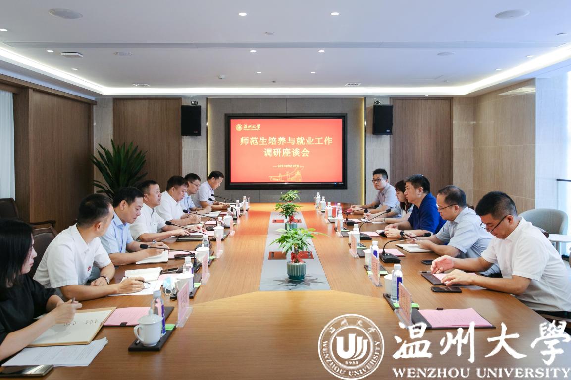 温州市教育局办公室、高教处、人事处负责人,我校党校办、教务处、招生与就业处、教育学院负责人参加调研座谈会。