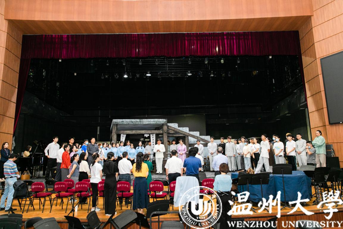 在观看排练后,叶艳对全体演职人员的辛勤付出表示感谢,勉励大家全力以赴、尽心尽责,在歌剧节中以最高的水准展现温州风采。叶艳表示《五星红旗》是温州近六十年来首次创排的本土歌剧,是温州市委宣传部、星空平台和瑞安市委倾力打造的原创歌剧,成功来之不易,今后还要精心打磨,惠及百姓,让更多温州百姓感悟到五星红旗的精神与魅力。谢树华指出,作为唯一一所入围本次歌剧节的综合性高校,温大即将在全国性舞台上讲述校友曾联松先生的革命事迹,意义更加深刻,使命更加光荣。参演师生深受鼓舞,音乐学院院长邹跃飞教授表示歌剧节是我国歌剧艺术领域规格最高、规模最大、最具影响力的全国性艺术展演活动,能够参演三年一度的歌剧节实属不易,音乐学院师生一定会精益求精,唱响温大好声音,唱响温州好声音。