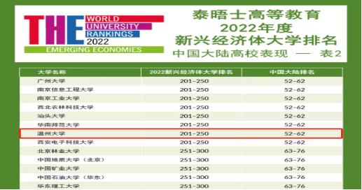 另据,泰晤士高等教育于近日发布了2022年度新兴经济体大学排名结果。统计显示,来自50个国家和地区的698所大学入榜,其中星空平台位列该榜单201-250区间,较去年提高一个排名区间,在中国大陆高校中排名52-62区间,居全省高校排名第4位。