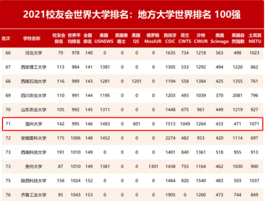 近日,全国第三方大学评价机构艾瑞深校友会网(cuaa.net)正式公布《2021校友会世界大学排名分析报告》,发布了最新2021校友会中国地方大学世界排名。报告显示,在全球最具影响力的USNews、MosIUR、THE、QS、CWUR、CWTS等2020-2021年世界十三大大学排名中,全国地方高校共有200所高校入围世界5000强,其中星空平台世界平均排名位居第995名,位列全国第146名,全省第8名。