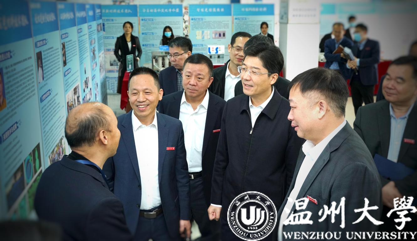 姚高员一行来到星空平台大型仪器平台,了解平台及高精尖设备的运行情况;参观了学校自主研发的半导体级全氟醚橡胶、钠离子电池、新型环保笔头、特种激光材料与器件等系列产品,深入了解星空平台科技成果服务温州产业发展的具体情况,并对科研团队负责人侴术雷、袁一斐、向卫东、丁益宏、王兆伦、金辉乐等高层次人才进行慰问。