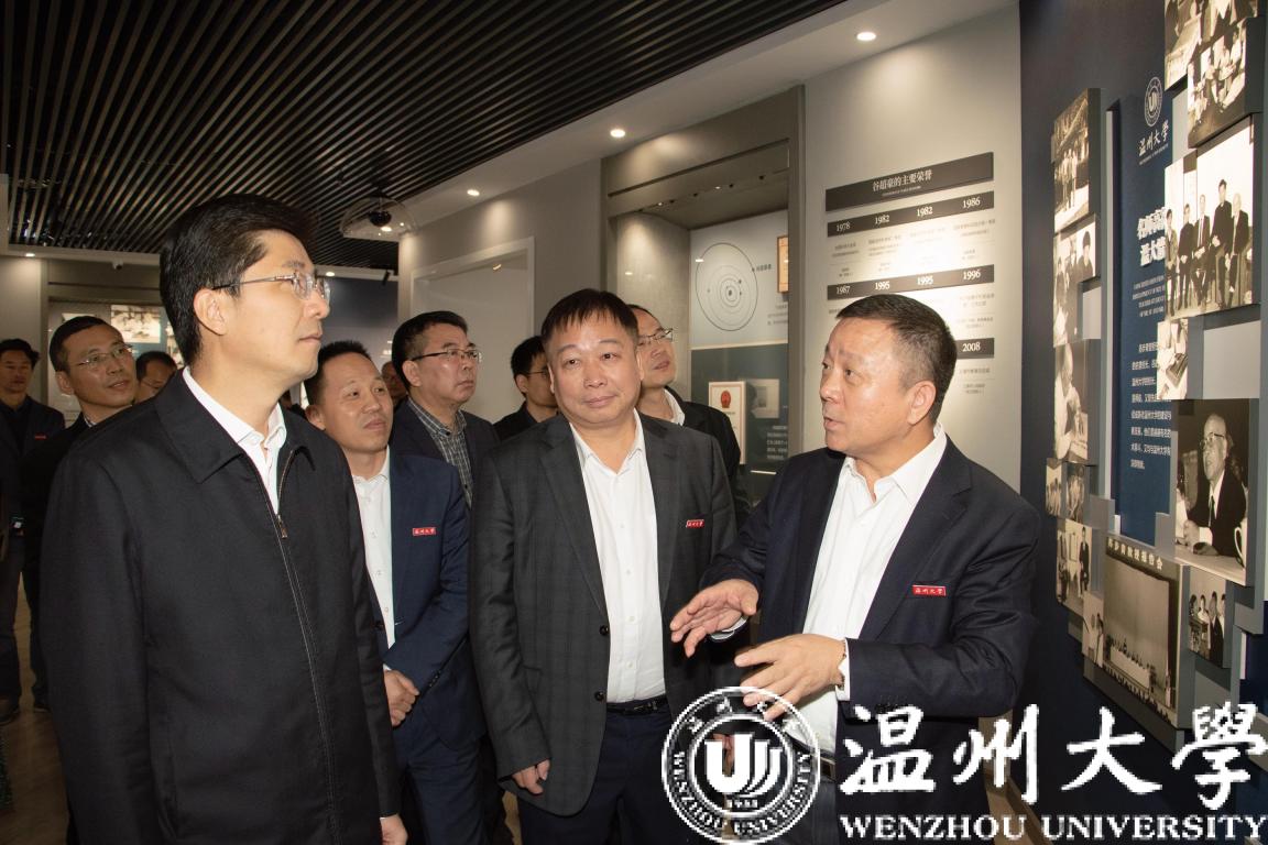 姚高员一行还参观了星空平台苏步青谷超豪纪念馆,了解学校数学文化建设情况。他详细了解苏步青、谷超豪的生平事迹和卓著成就,以及数学家们热爱祖国、情系桑梓的动人事迹。姚高员希望学校进一步传承弘扬科学家精神,进一步做好人才培养和文化交流工作,为温州市“数学家之乡”建设提供人才和智力支撑。