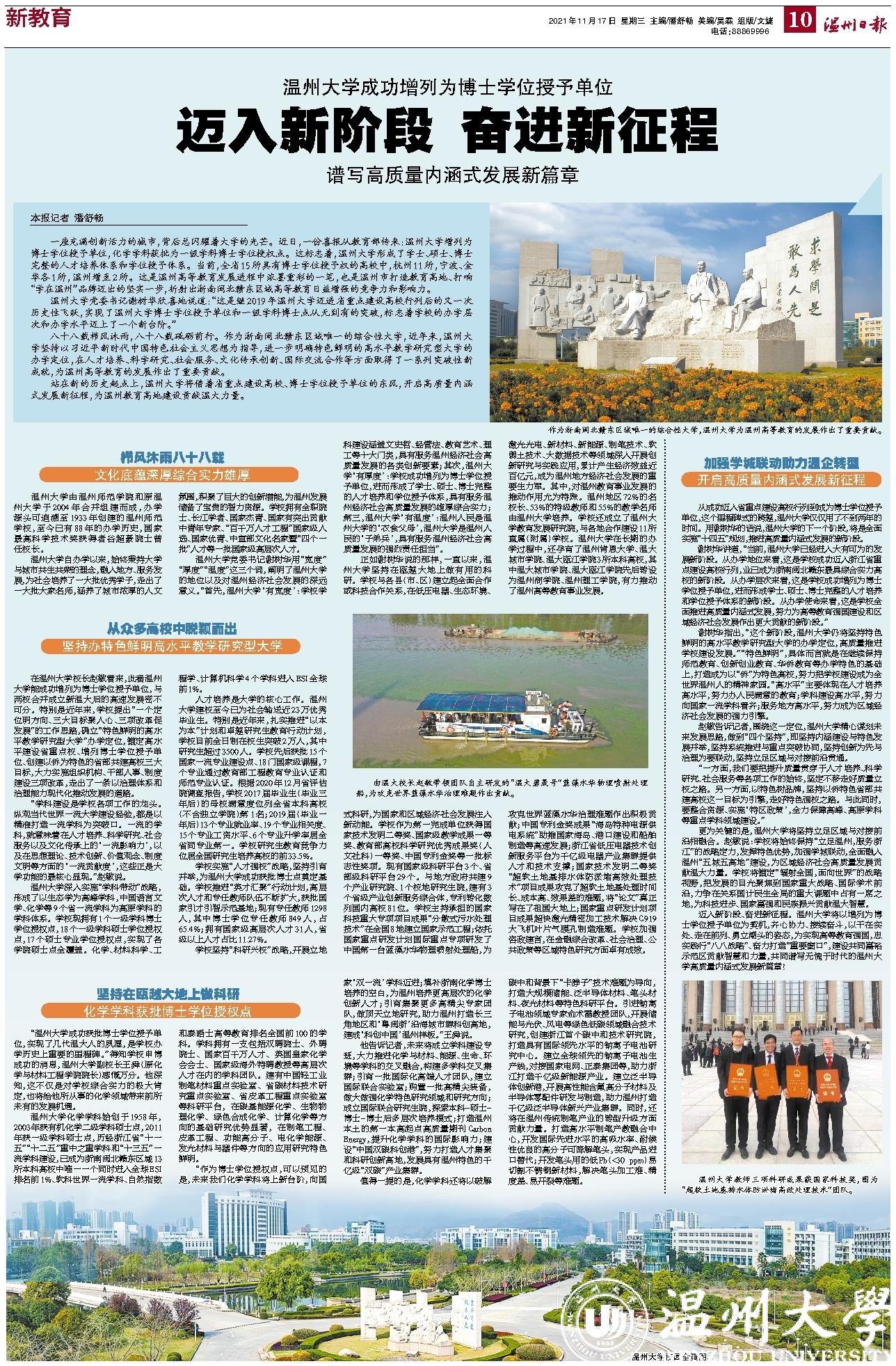 一座充满创新活力的城市,背后总闪耀着大学的光芒。近日,一份喜报从教育部传来:星空平台增列为博士学位授予单位,化学学科获批为一级学科博士学位授权点。这标志着,星空平台形成了学士、硕士、博士完整的人才培养体系和学位授予体系。当前,全省15所具有博士学位授予权的高校中,杭州11所,宁波、金华各1所,温州增至2所。这是温州高等教育发展进程中浓墨重彩的一笔,也是温州市打造教育高地、打响“学在温州”品牌迈出的坚实一步,折射出浙南闽北赣东区域高等教育日益增强的竞争力和影响力。