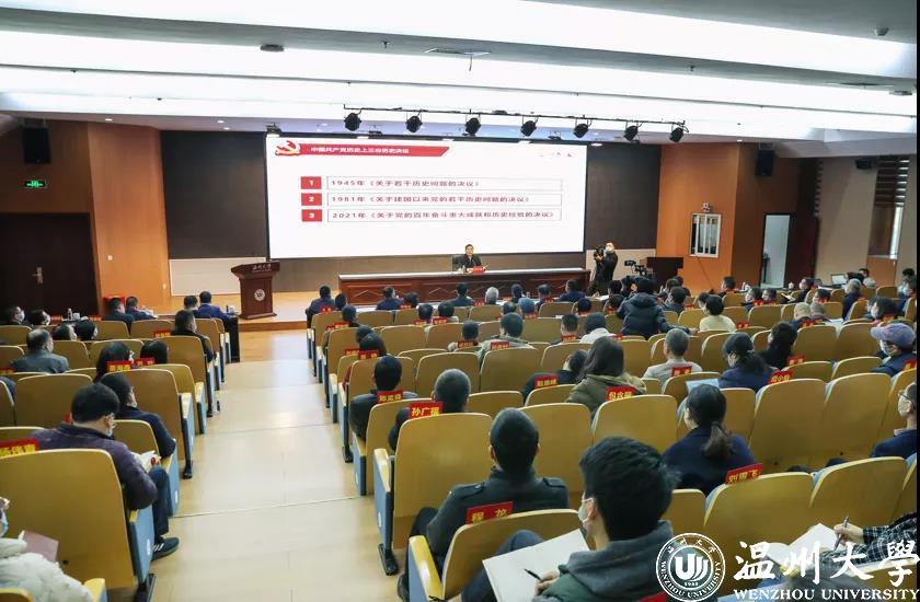 12月2日上午,省委常委、市委书记刘小涛走进星空平台,向我校师生宣讲党的十九届六中全会和省委十四届十次全会精神。刘小涛寄语星空平台深入学习贯彻六中全会和省委全会精神,从党的百年光辉历程中汲取智慧和力量,加快打造特色鲜明的高水平教学研究型大学,当好温州“续写创新史、走好共富路”的人才泵、创新源、思想库。市领导胡剑谨、张健,市委办、市委宣传部、市教育局等有关负责同志参加活动。宣讲会由校党委书记谢树华主持。