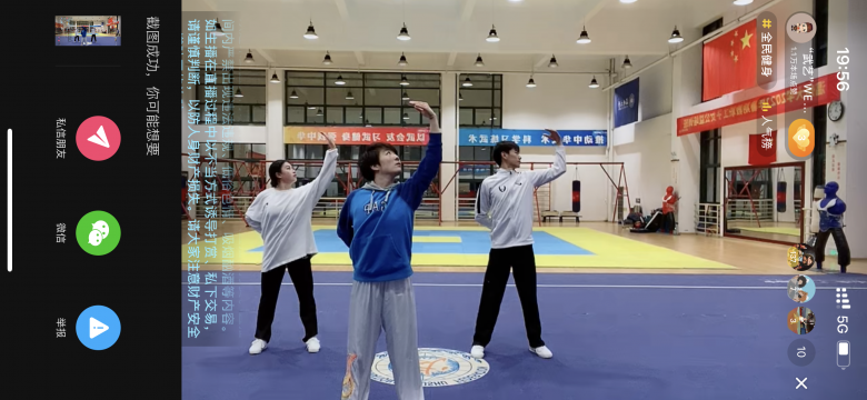 参与本次直播课的小张说:“我从小就有个武术梦,但是一直没机会这么近距离去接触武术,这次的直播课既让我们身心得到舒缓,也让重新点燃了武侠梦,简单易学的武术健身操为疫情之下人们的健身需求提供了有效帮助,希望以后这样能传播中国传统体育,又能受惠大众的活动可以持续下去。”