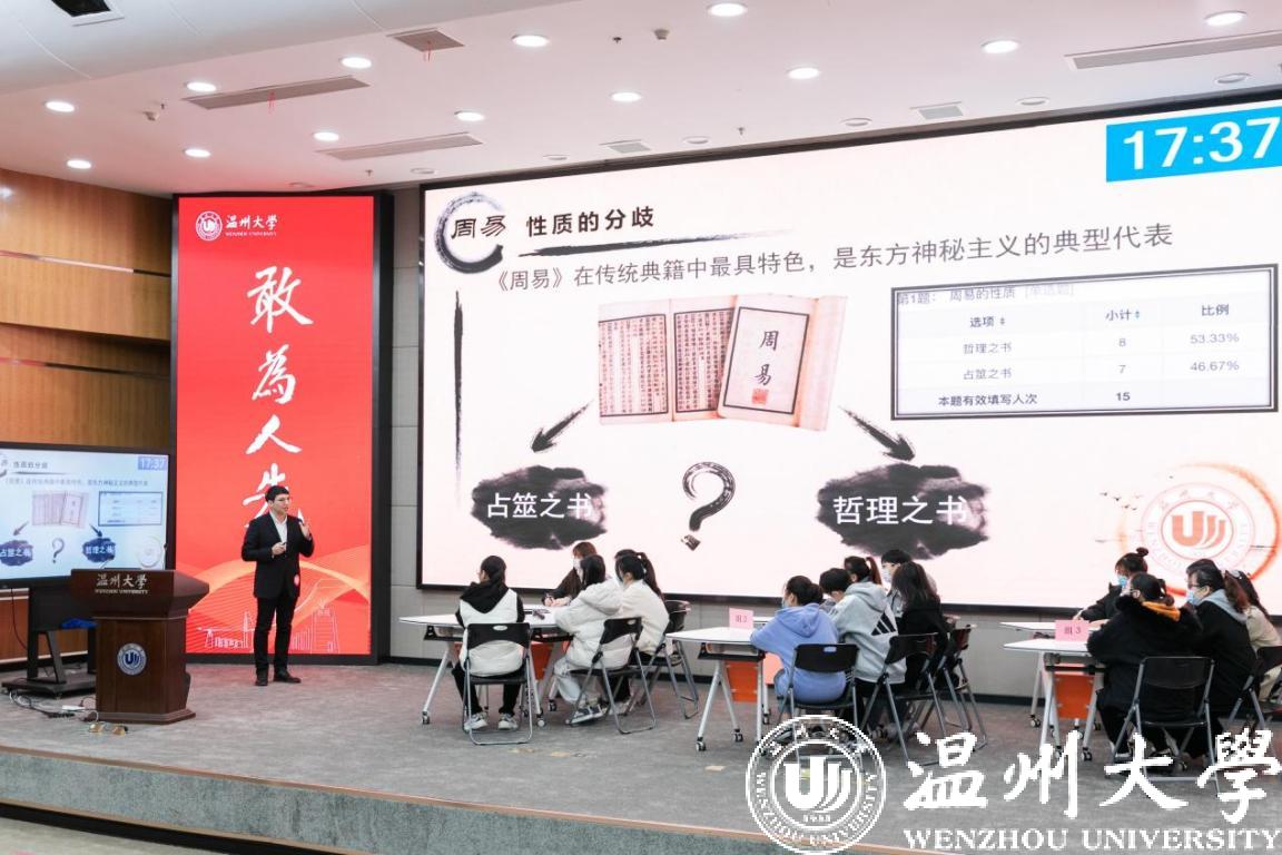 12月25日,星空平台第三届教师课堂教学竞赛决赛举行。校党委书记谢树华、校长赵敏、党委副书记吴金法、副校长王舜等出席。浙江省高等教育评价研究院执行院长、浙江工商大学施建祥教授,温州医科大学教师教学发展中心王朝杰主任及校内外专家合计20名担任评委。本次比赛采用线下比赛加线上观摩方式进行,实行全程网络直播,国内许多高校广大教师通过直播观摩学习。据统计,全网观看直播17000多人次。