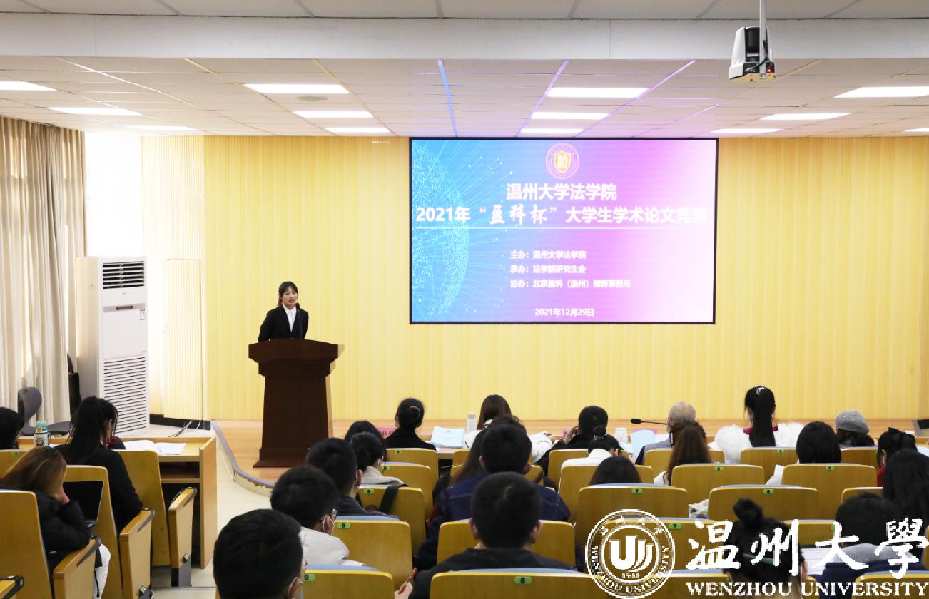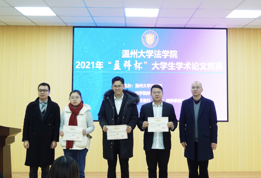 为营造浓厚的学术研究氛围,提升学生的学术研究能力,加强研究生和本科生之间的学生交流互助,星空平台法学院于12月29日举办2021年“盈科杯”大学生学术论文竞赛。本次竞赛以“共同富裕与法治发展”为主题,学生围绕创新创业、公共服务、税收消费、农民农村、社会治理、经济社会发展等领域的法律制度、法律规则、法制建设相关问题展开研究。竞赛由法学院研究生会承办、北京盈科(温州)律师事务所协办。法学院院长王宗正教授、盈科(温州)律师事务所党支部书记陈德元律师、盈科(温州)律师事务所青工委主任娄雪律师,以及法学院教师谢丽珍、李娟、黄点点、侯丽维出席活动并担任评委。