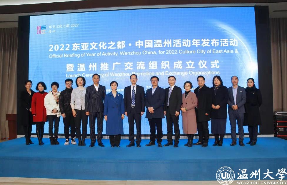 1月26日上午,“2022东亚文化之都·中国温州活动年”发布活动暨温州推广交流组织成立仪式在温州市海外传播中心举行,浙江省文化和旅游厅副厅长、党组成员、一级巡视员许澎,温州市人民政府副市长娄绍光出席,我校外国语学院负责人等参加活动。温州市人民政府副秘书长项光夫主持。