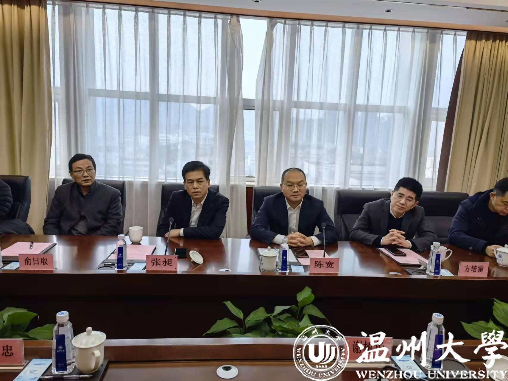 2月27日上午,温州市副市长陈宽一行莅临我校调研指导,市政府副秘书长方培雷、瓯海区副区长张昶等陪同调研。校党委书记谢树华、党委副书记庄兴忠、副校长王舜等出席调研座谈会。