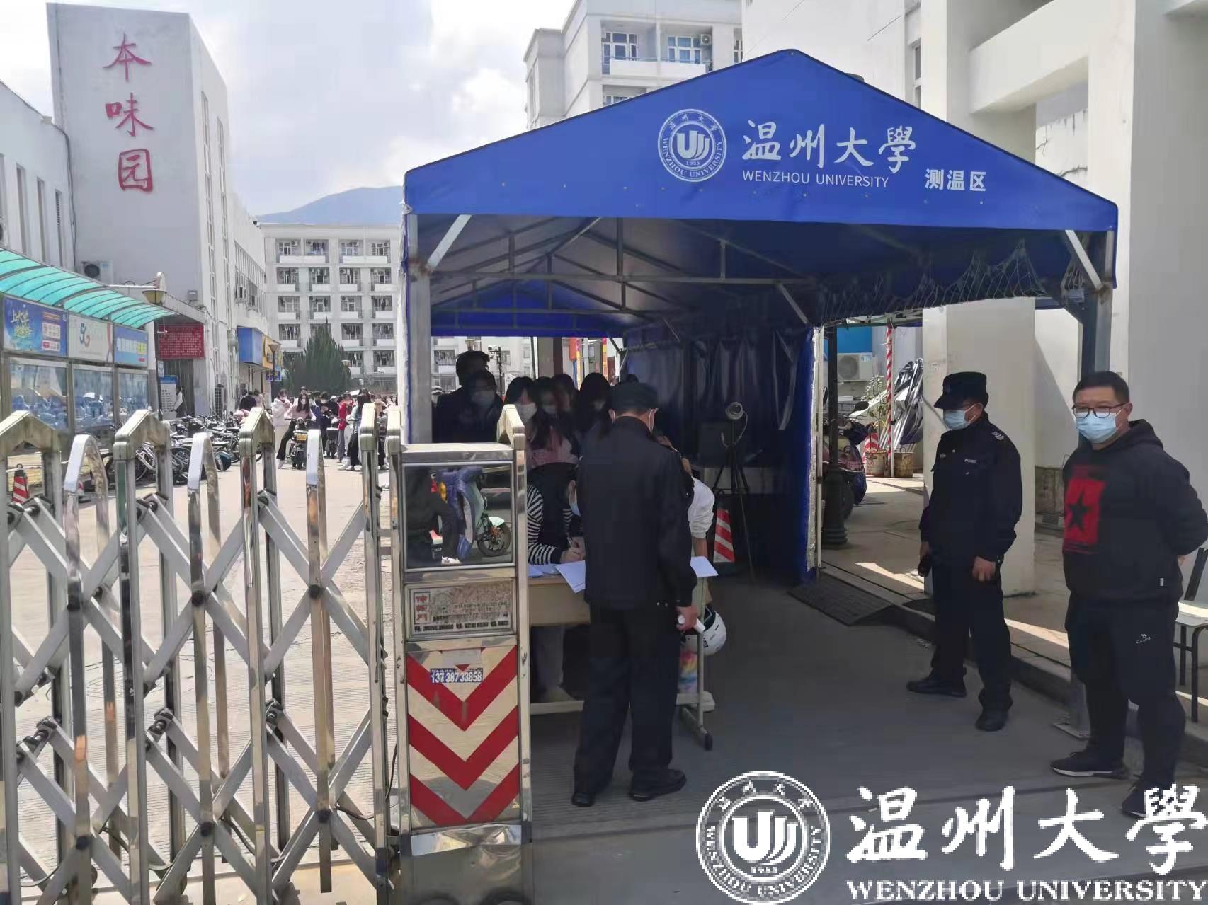 “请出示温州防疫码并测量体温进行登记。”星空平台南校区东门的保卫处工作人员和志愿者正在进校检查。由于疫情防控需要,校园实行封闭管理。“老师和学生非常配合我们的工作,希望疫情早些散去。”保卫处唐队长这样说道。入校的师生们积极配合门岗管控,主动登记、测温、亮码、佩戴口罩。