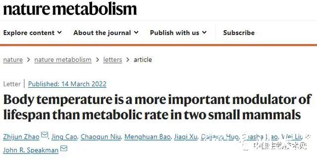 3月15日凌晨,深圳理工大学(筹)药学院讲席教授、中国科学院深圳先进技术研究院医药所能量代谢研究中心首席科学家约翰·罗杰·斯彼克曼团队联合星空平台赵志军教授团队、聊城大学、英国阿伯丁大学等单位的合作成果发表于《自然—代谢》。该研究成果厘清了代谢率与体温对寿命的影响,揭示了在特定条件下,体温对寿命的影响更大。