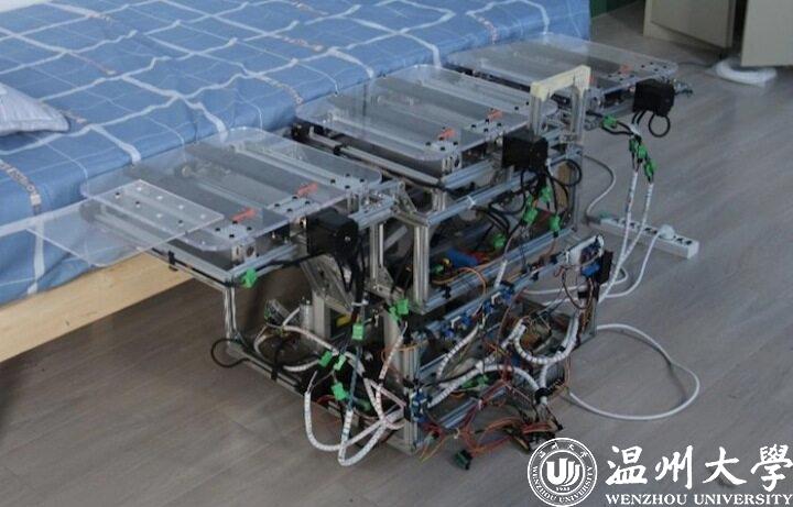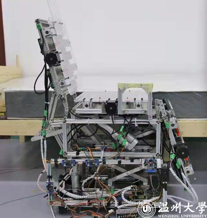 这款名为“起居宝”的老人上下床辅助平移装置终于完成了。该装置具有底座升降功能、姿态转换功能、装置对床的传送功能和辅助起身功能。通过这四个功能能够让老人上下床的时候更加舒适省力方便,也能够在老年人起夜的时候保证老人的安全,甚至提升他们生活的幸福感和独居生活的质量。这一发明还获得了浙江省第十七届机械创新设计大赛全省第二的好名次。