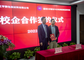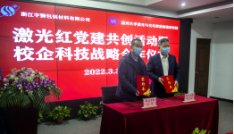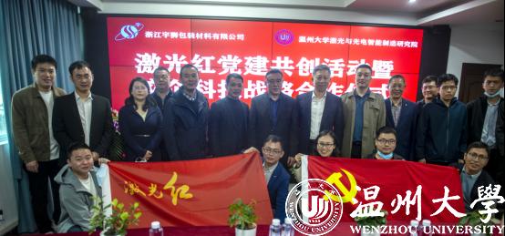 双方进行激光红党建共创签约和产学研合作签约。温大激光研究院孵化的领伟创新智能系统(浙江)有限公司与浙江宇狮就溶液高精度定量控制系统的开发签订合作协议,这将解决宇狮包装材料色浆高精度配比的难题。