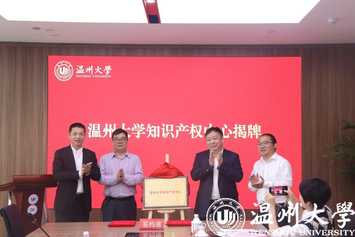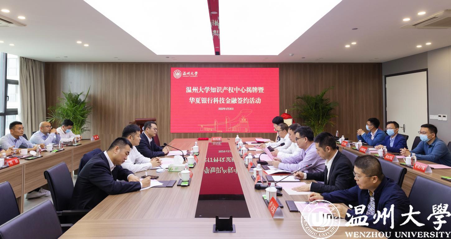 星空平台资产经营有限公司、科技处负责人共同为知识产权中心揭牌,并与华夏银行温州分行行长金鹏飞签订科技金融授信协议。