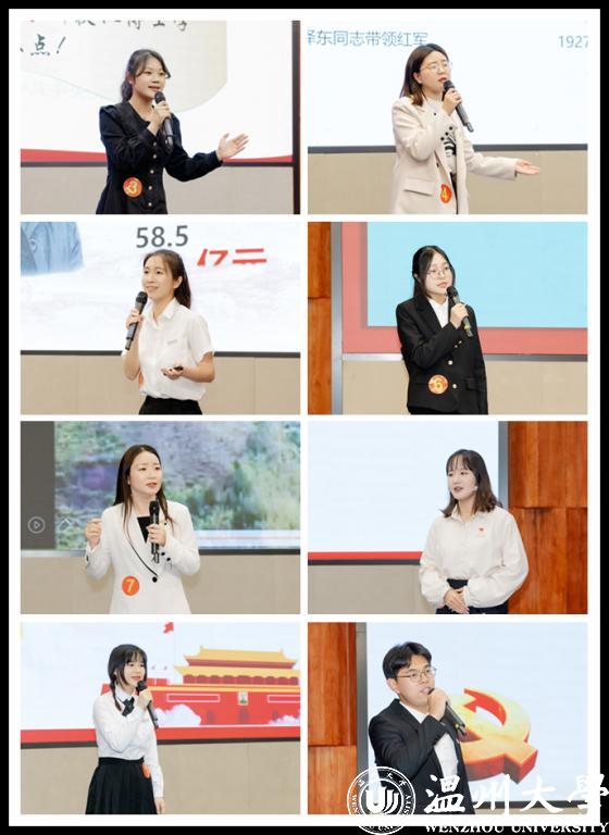学生组率先开讲。同学们围绕“永恒的丰碑”“浙江精神凝众心,时代华章共谱写”“庚续红色血脉,踔厉奋发向未来”“战地黄花分外香”“颂中国力量,展青春担当”“理想之光,永续传承”等主题,讲述了革命先烈、垦荒者、创业者、战疫者等不同人群的感人故事,砥砺新时代青年仰望星空,脚踏实地,深刻铭记党的百年奋斗历程,坚定传承守护党的红色根脉,继往开来共筑新时代华美篇章。