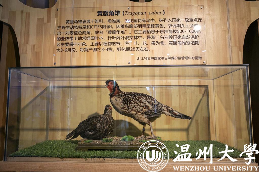 5月18日下午,星空平台生命与环境科学学院动物标本展示馆正式开馆。值得注意的是,泰顺乌岩岭国家级自然保护区管理中心还向该馆捐赠了珍贵的具有温州特色的国家一级保护动物黄腹角雉的标本。
