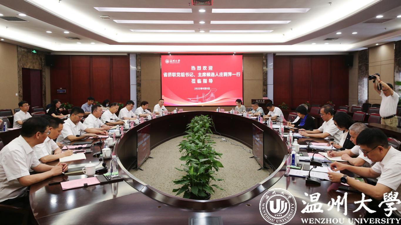 6月8日上午,浙江省侨联党组书记、主席候选人庄莉萍,党组成员、副主席、一级巡视员张维仁,办公室(组织人事部)二级主任科员孟晨啸一行莅临我校调研指导工作。温州市委常委、统战部部长汪驰,市侨联党组书记吴娜丽,市侨联党组成员、副主席杨海曼,市侨联党组成员、秘书长陈晓军等领导陪同调研。校领导谢树华、吴金法、庄兴忠、徐和昆、蔡曙光、杨林书、王舜、潘玉驹、郑信军出席调研座谈会。