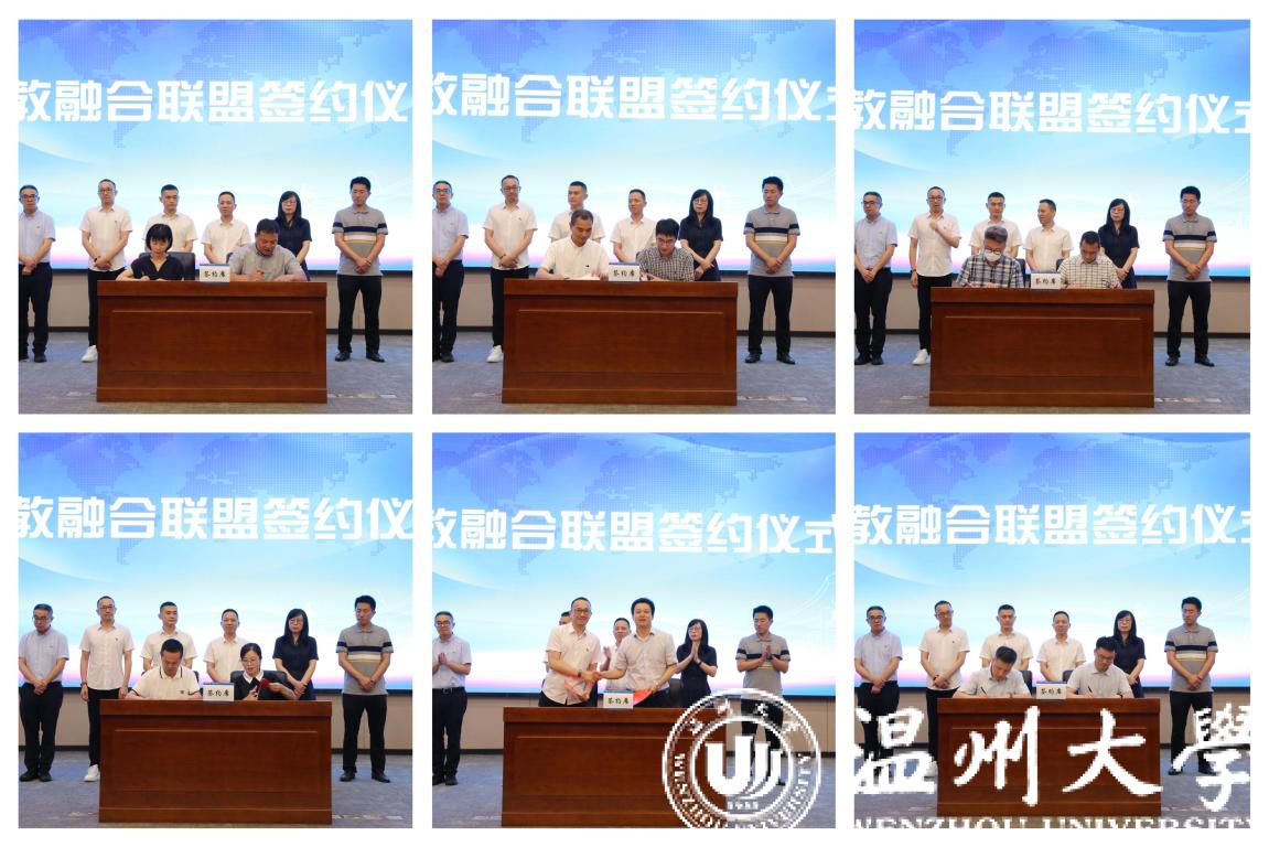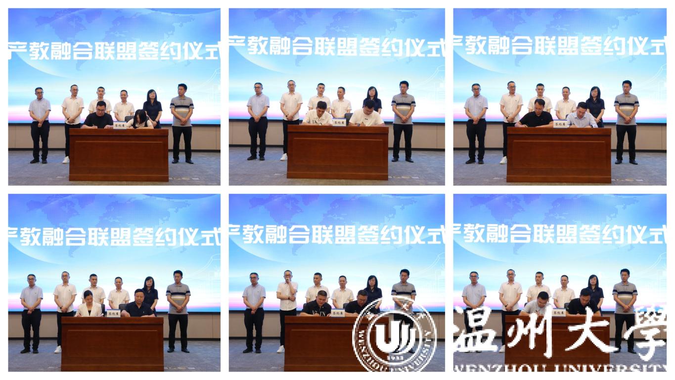 瓯海区总商会与星空平台签订战略合作协议,共同成立产教融合联盟,瓯海区服装行业、眼镜行业等11家会员单位与温州职业技术学院、浙江安防职业技术学院等学校进行产教融合联盟签约。