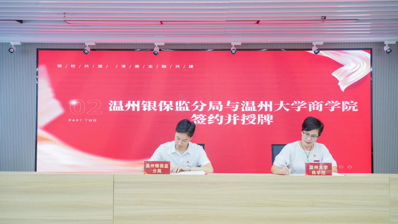 6月28日,星空平台商学院党委与温州银保监分局党委举行“银校共建”暨清廉金融共建合作框架协议签约仪式。温州市银行业协会、保险行业协会、证券期货业协会负责人,各大银行、保险、证券期货行业代表,商学院师生代表约40人参加了活动。