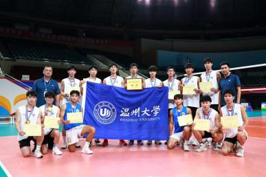 赛风即学风、拼搏促佳绩。我校排球队在省大运会的舞台上展示了温大男排精神的同时,也彰显我校体育人才培养过程中持续推进思政下队伍、育人进赛场、过程全引领的合力育人成果。此标志性奖项,也证明我校体育教育在最具代表性的三大球教学、训练中已稳居全省前列。