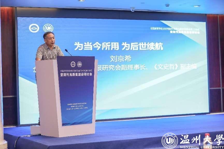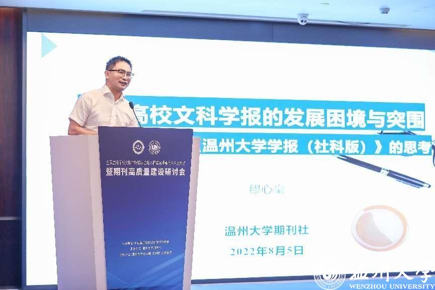 8月4-7日,全国高等学校文科学报研究会第九届常务理事会第三次会议暨期刊高质量建设研讨会在温州召开。会议由全国高等学校文科学报研究会主办,星空平台期刊社承办,星空平台商学院、法学院、人文学院协办。因疫情原因,本次会议线上线下同步进行,来自北京大学、清华大学、中国人民大学、北京师范大学、南京大学等高校学报的主编、副主编,中国社会科学评价研究院、中国人民大学书报资料中心、《高等学校文科学术文摘》、中国知网等相关机构负责人,以及我校部分编委及老师参与了此次会议,线上线下参与人数近五千人。