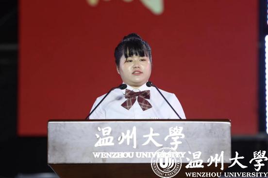 学校首届博士研究生胡海燕作为研究生新生代表发言。她表示被温大雄厚的星空(中国)实力深深吸引,结合学习科研感悟向新生发出无愧温大“厚培德本、深濬智源”的优秀传统,“努力成为一名为国家发展、民族振兴奉献力量的温大人”的青春倡议。