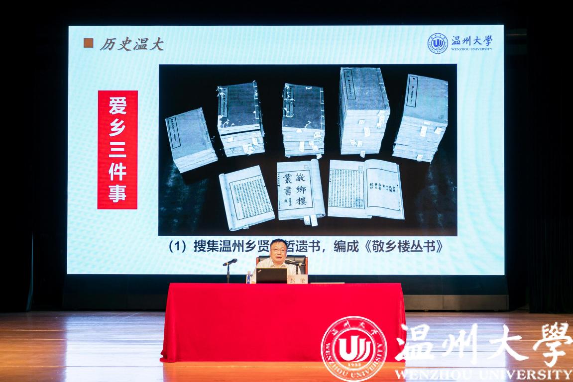 在“历史温大”篇章中,赵敏以温州的千年历程引入,介绍了温州作为“国家历史文化名城”“温州人精神”等起航地的辉煌;介绍了以黄溯初、金嵘轩、苏步青及魏敬先为代表的先贤光辉事迹。让新生明白正是有了这些先贤的伟大付出,才有了熠熠生辉的温大历史与文化发展以及传流至今的“光大国族 造福人群”的温大精神。