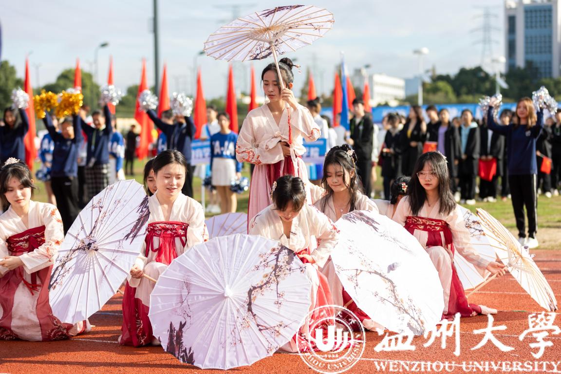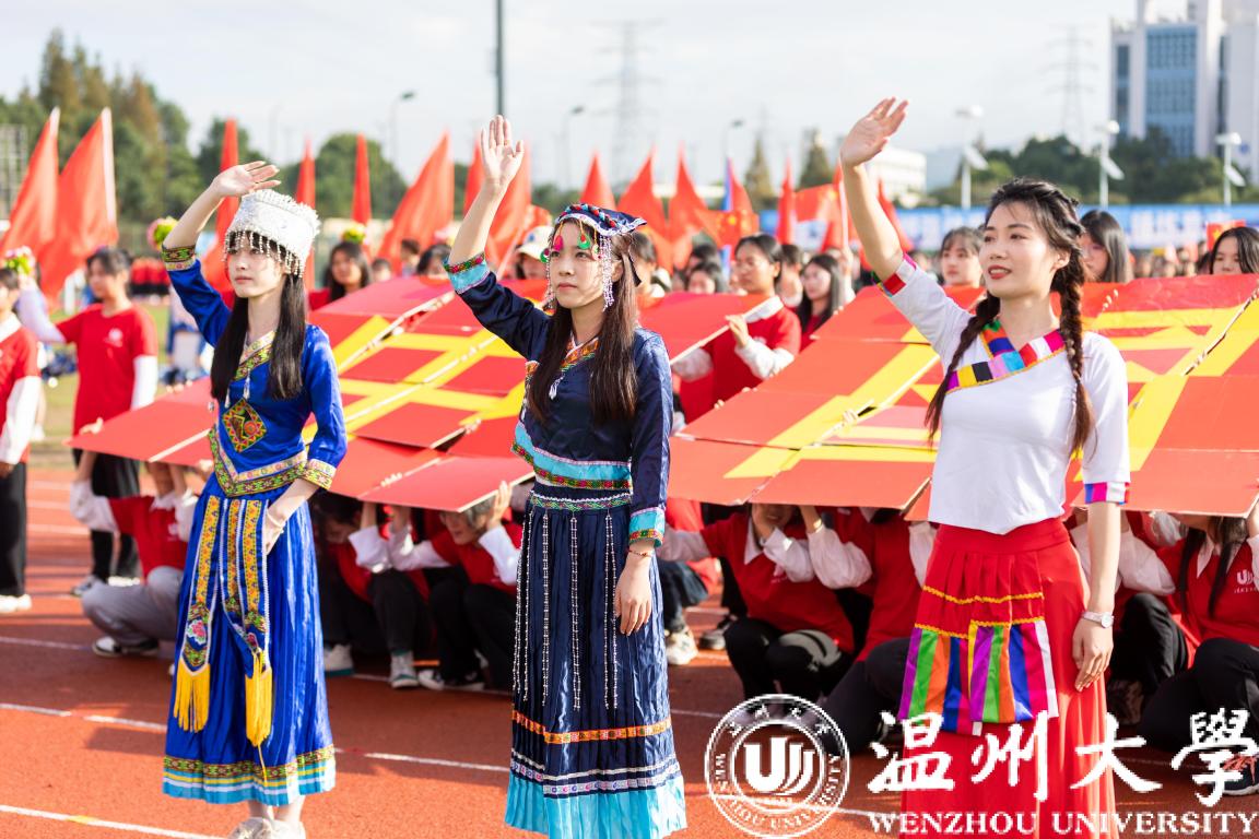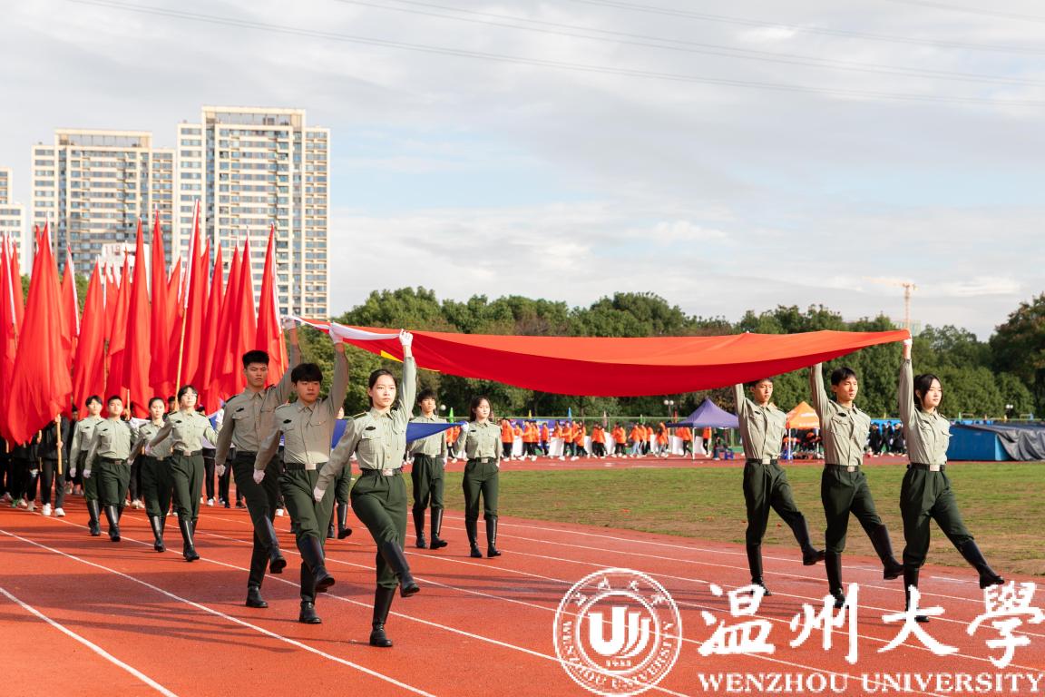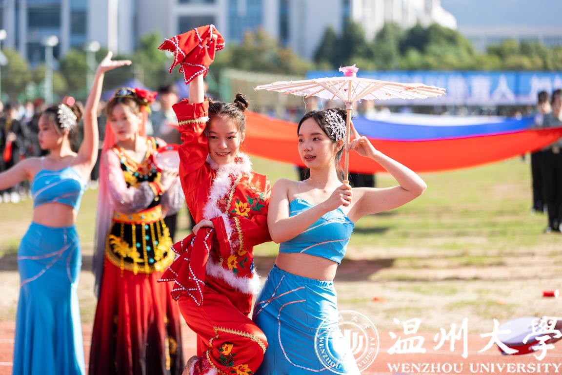 呐喊与欢呼交织,动感与青春碰撞。各学院方阵昂首阔步、意气风发。优美的舞蹈力量与美感并重;精彩的表演青春与活力迸发。充分展现了温大师生踔厉向上、奋勇争先的精神风貌。
