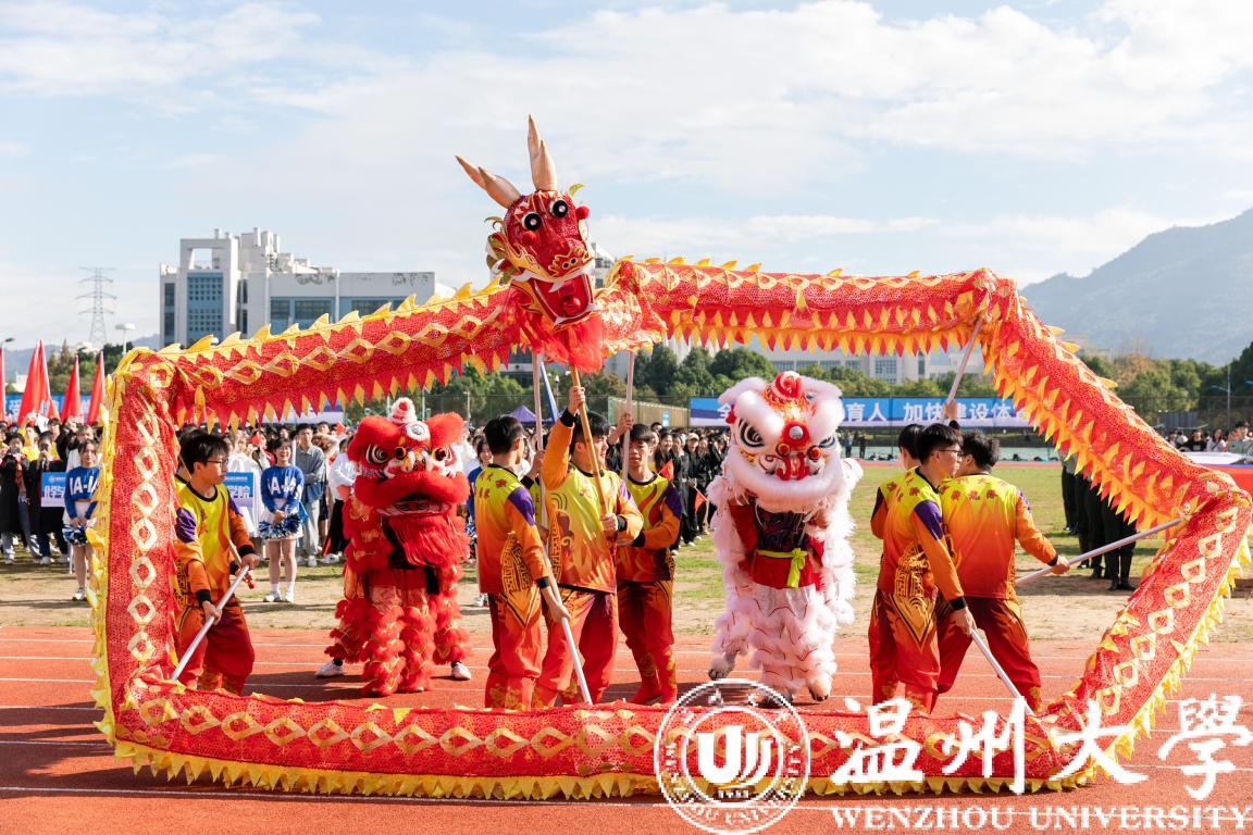 舞龙舞狮手龙表演尽情展现我校体育力量之美,龙狮勇于拼搏、知难而上,体现我温大师生的凝聚力与团结精神。